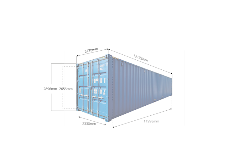 It is an elevated 12-meter container of standard size. It has a solid floor made of multi-layer, waterproof plywood, strong doors and the largest capacity among new containers available on the market. The containers have made one sea voyage and may have minor cosmetic defects.